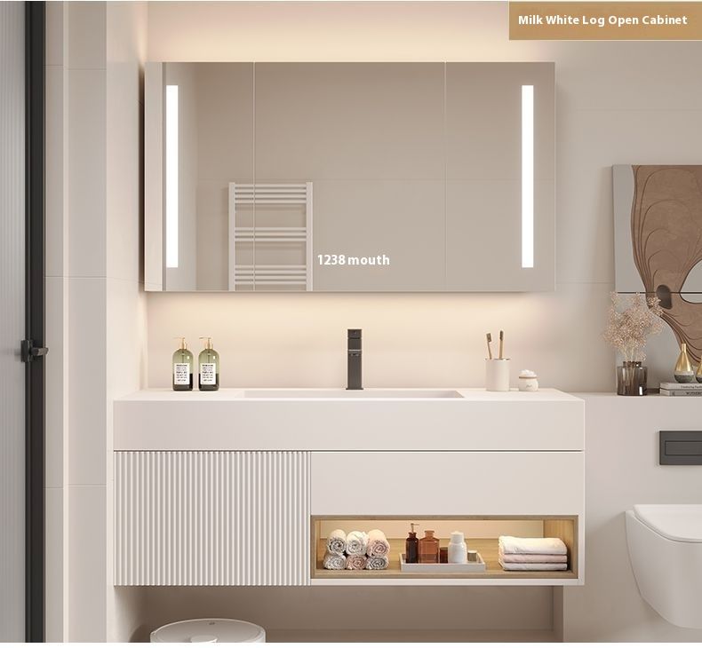 QW- White Storage Smart Mirror Cabinet, Bathroom Sink