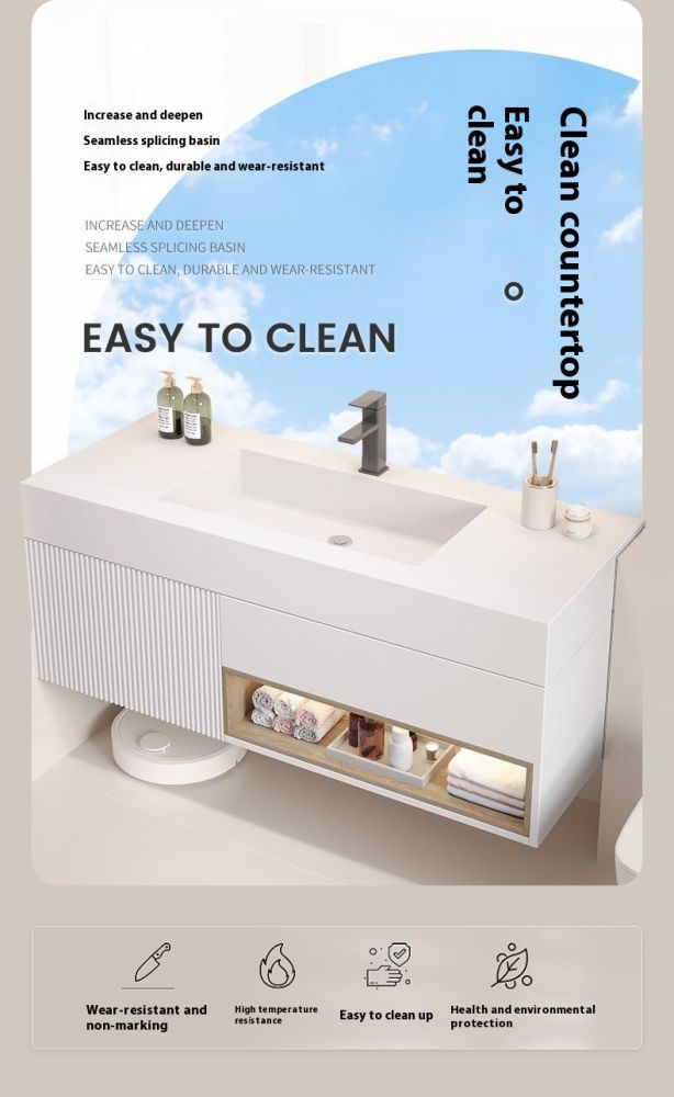 QW- White Sink Smart Glass Cabinet, Real Wood Bathroom Storage Cabinet
