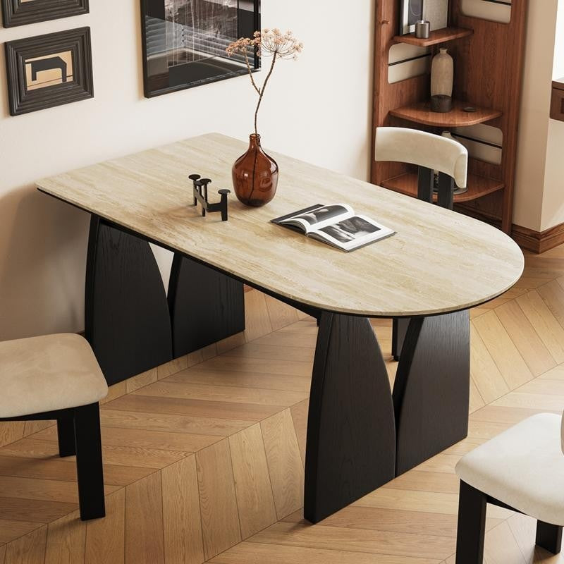 Simple French style oval dining table set Made from solid wood and granite, classic design.