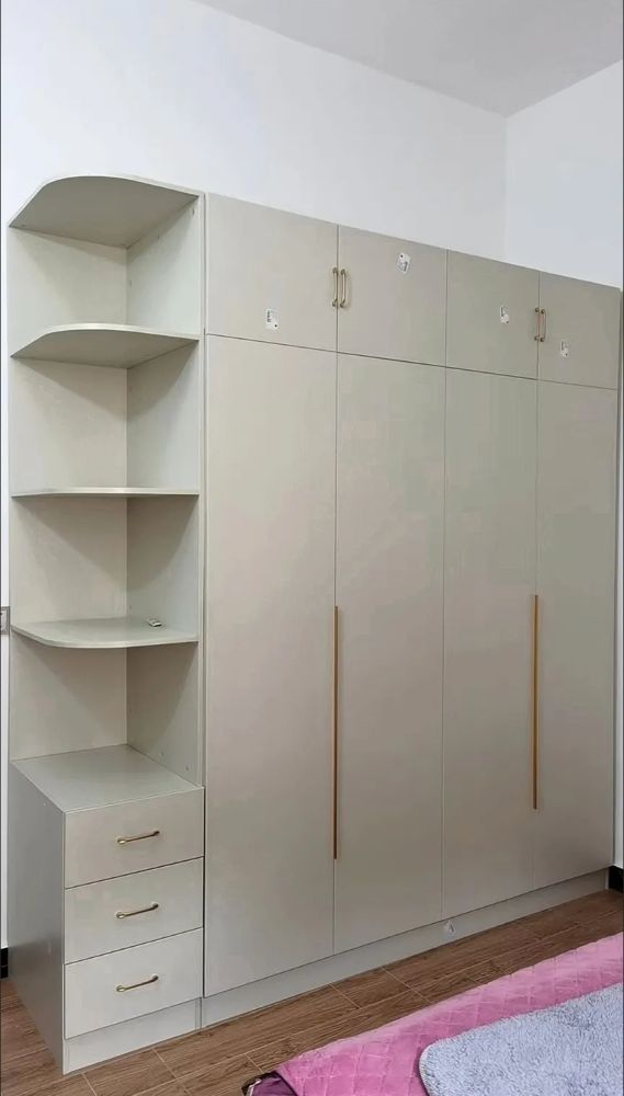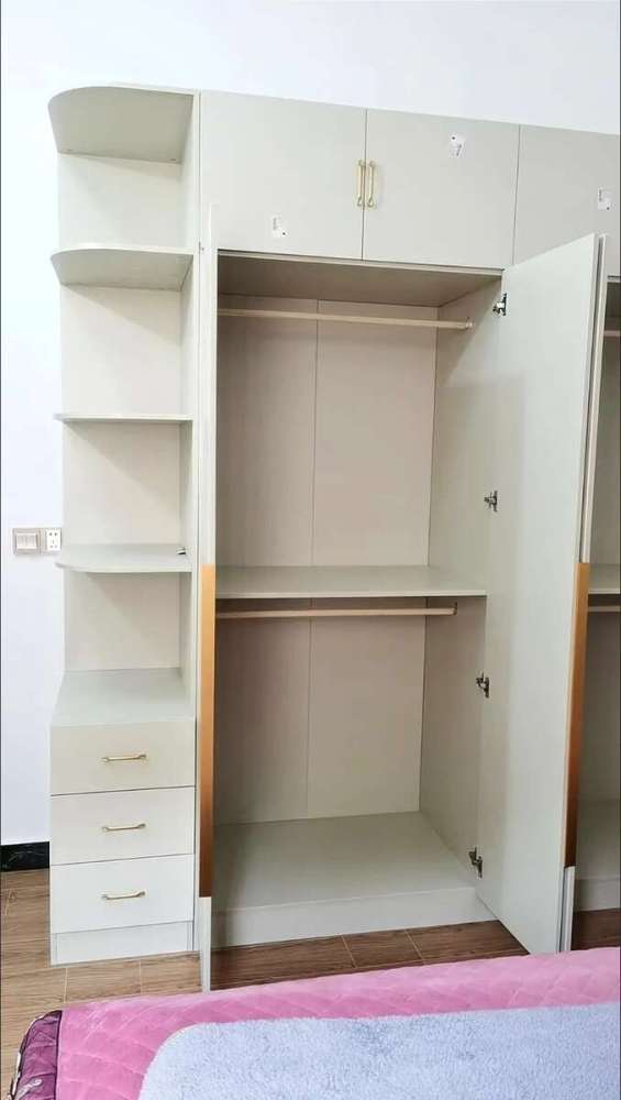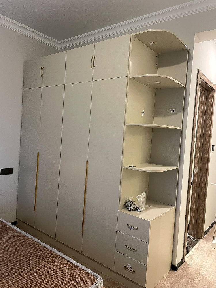 Solid Wood Thick Back Plate Bedroom Cream Windproof High Capacity Home Wardrobe