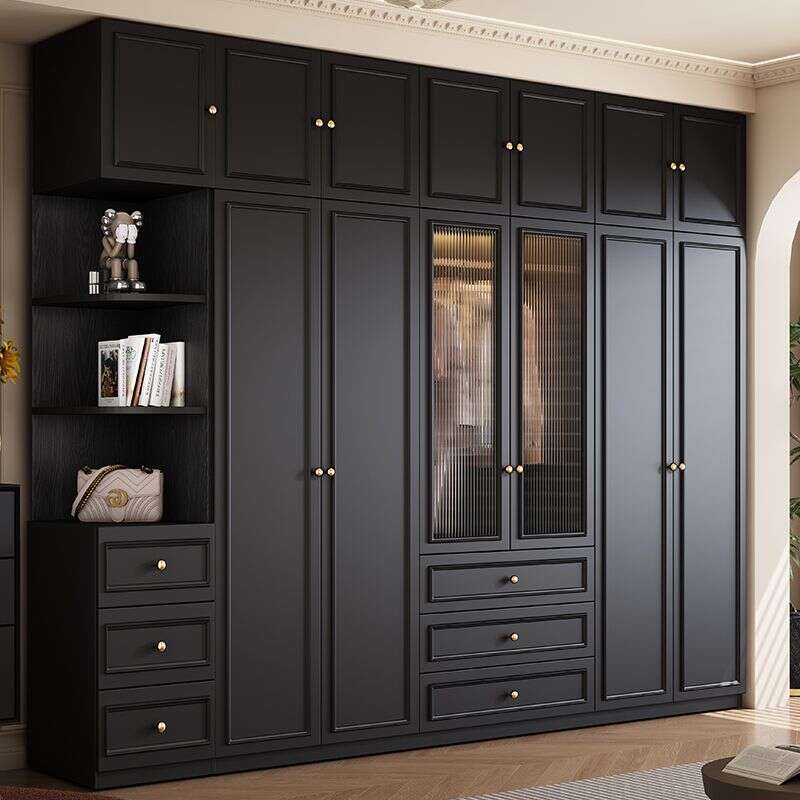 Solid wood Vintage French black For the bedroom american style large wardrobe