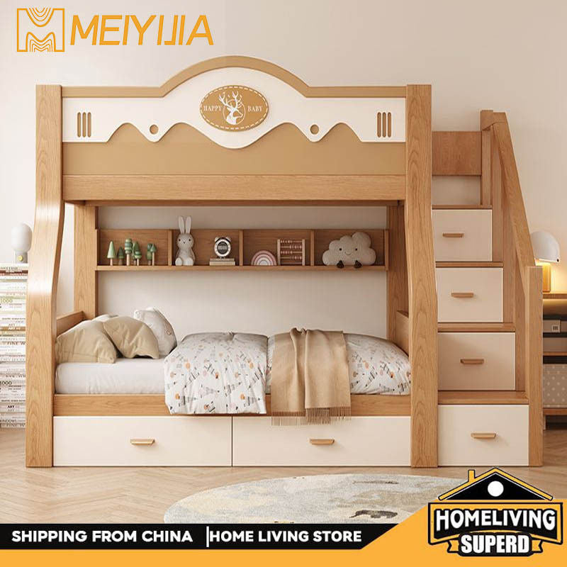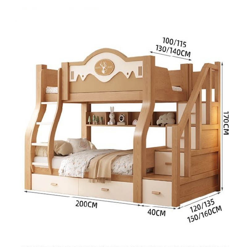 Solid Cherry Wood Upper and Lower Children's High Low Combined Bunk Multifunctional Two-layer Bed Solid Cherry Wood Upper and Lower Children's High Low Combined Bunk Multifunctional Two-layer Bed