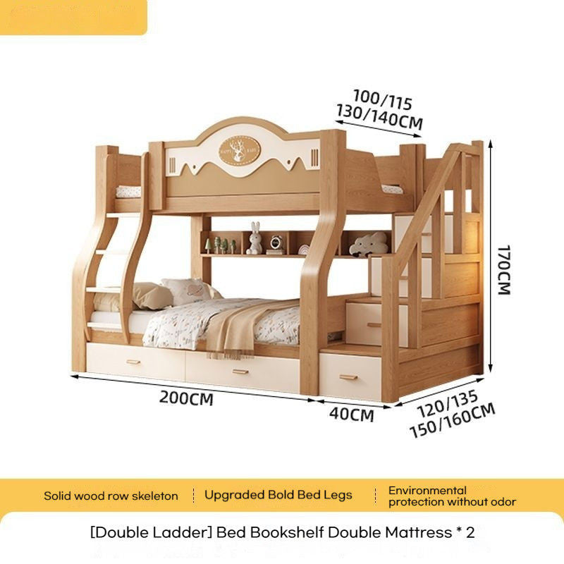 Solid Cherry Wood Upper and Lower Children's High Low Combined Bunk Multifunctional Two-layer Bed